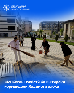 Кормандони Хадамоти алоқаи назди Ҳукумати Ҷумҳурии Тоҷикистон имрӯз ба шанбегии умумӣ баромада, дар корҳои ободонию тозагии муҳити атроф фаъолона иштирок намуданд. Дар доираи ин иқдом, кормандон гирду атрофи бинои маъмурӣ, роҳравҳо ва ҳудуди ҳамшафатро аз партовҳо тоза карда, ба ҷамъоварӣ ва баровардани хошоку алафҳои худрӯй машғул гардиданд. Ҳамзамон, корҳои сабзкорӣ ва нигоҳубини дарахту буттаҳо анҷом […]