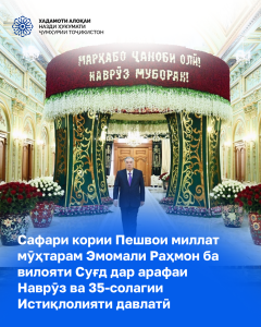 Рӯзи Пойтахт муборак, ҳамдиёрони азиз! Шуморо ба муносибати Рӯзи Пойтахт самимона табрик менамоем! Душанбе ифтихори тоҷикистониёну тоҷикони ҷаҳон буда, ҳамчун рамзи истиқлолият, соҳибихтиёрӣ ва суботи кишвар шинохта мешавад. Имрӯз пойтахти азизамон бо ободкориҳо, биноҳои замонавӣ ва рушди босуръат симои нав касб намуда, ба маркази имкониятҳо ва пешрафт табдил ёфтааст. Дар ин рӯзи фархунда ба ҳар […]