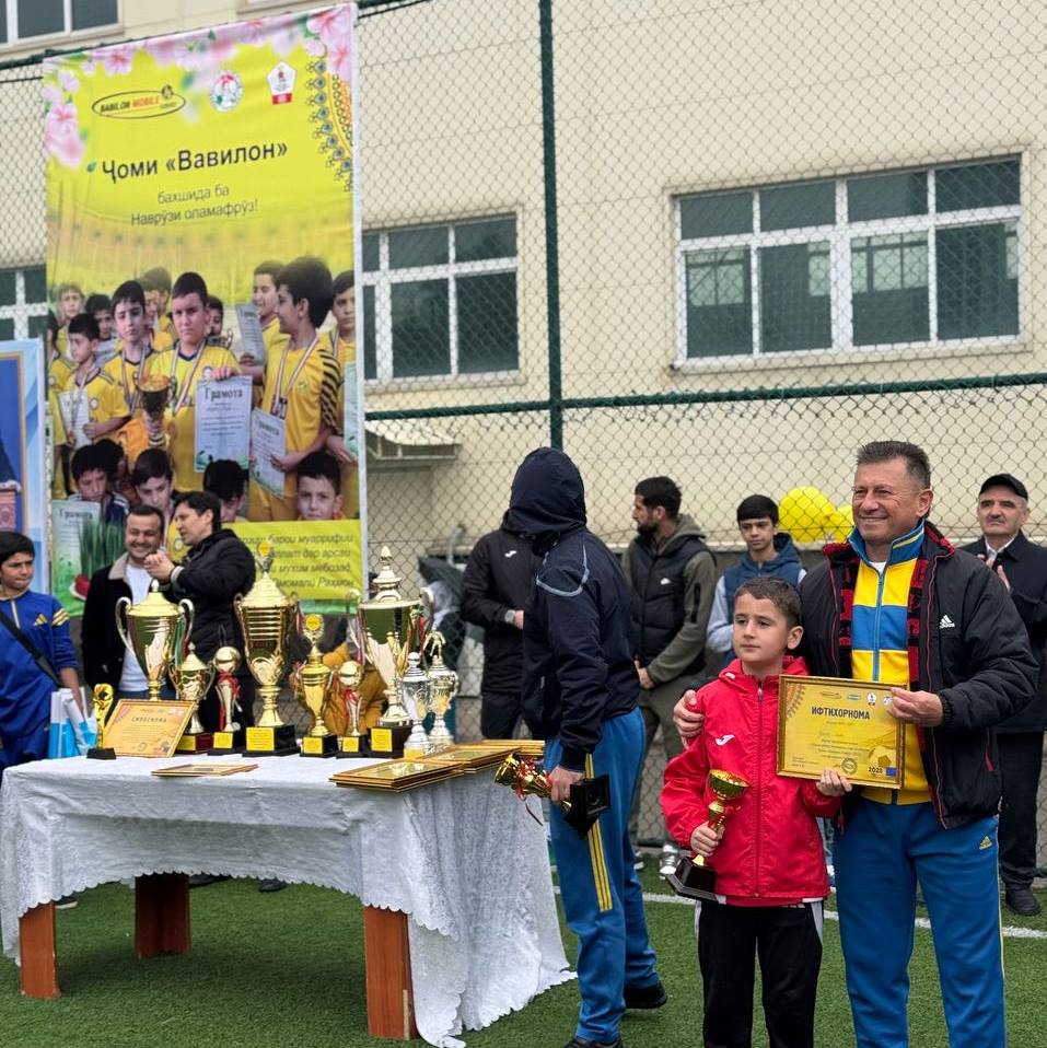 Финал турнира украсило торжественное награждение победителей. Легенды таджикского футбола Нуриддин Давронов и Фатҳулло Фатҳуллоев вручили Кубок “Вавилон – Навруз 2025” и призы юным чемпионам. На мероприятии присутствовали представители Федерации футбола Таджикистана, команда Истиқлол, а также ветераны национального футбола.