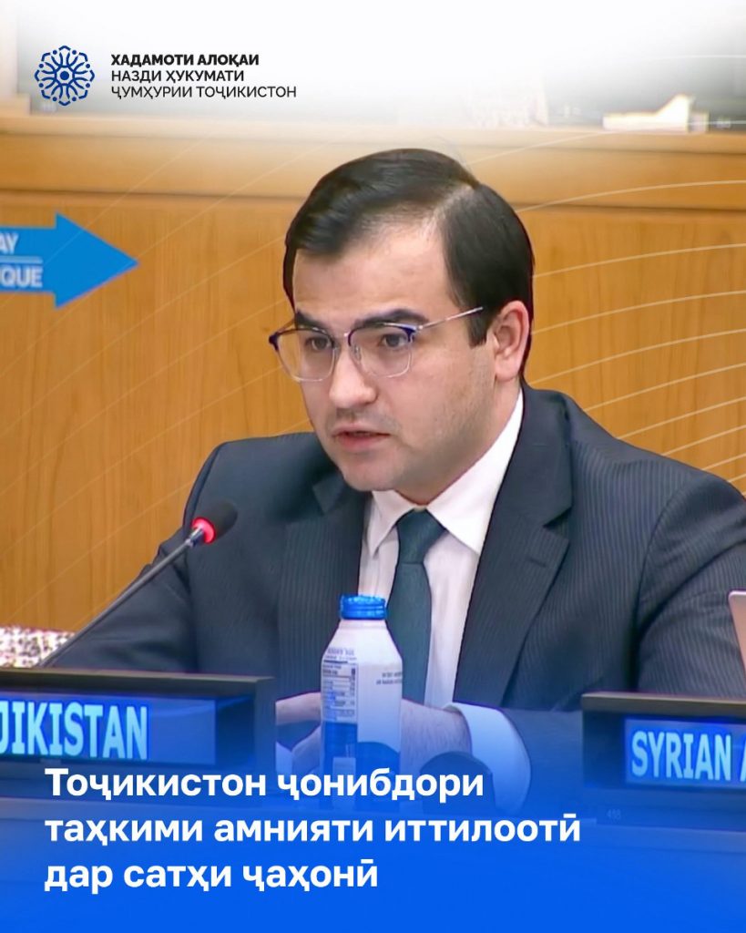 Ба иттилои манбаъ, котиби сеюми Намояндагии доимии Ҷумҳурии Тоҷикистон дар Созмони Милали Муттаҳид Рахмонов Сафар зимни суханронӣ таъкид кард, ки Тоҷикистон ҷонибдори густариши ҳамкории бисёрҷониба барои ташаккули фазои амну устувор ва бозуи иттилоотӣ мебошад.